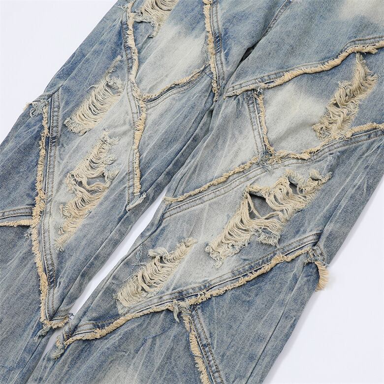 このグランジクラッシュワイドデニムパンツは、ヴィンテージ加工とダメージデザインが特徴の一本。ブラックデニムをベースに大胆なクラッシュ加工を施し、無骨でありながら洗練された雰囲気を演出します。ワイド&ルーズフィットなシルエットで、動きやすさとトレンド感を兼ね備えたデザイン。HIPHOP、DRILL、RAGE、TRAPファッションとの相性も抜群で、海外ストリートの雰囲気を存分に楽しめます。ユニセックスデザインなので、男女問わず着用可能です。