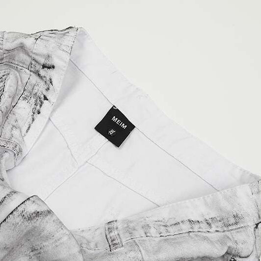大胆なウォッシュ加工と、リアルなダメージ感をプリントで表現した存在感抜群のワイドパンツ。あえて汚し加工を強調することで、グランジやストリートファッションに欠かせない無骨な雰囲気を演出。切り替え部分に施されたスナップボタンや独特のシルエットが、個性を際立たせます。