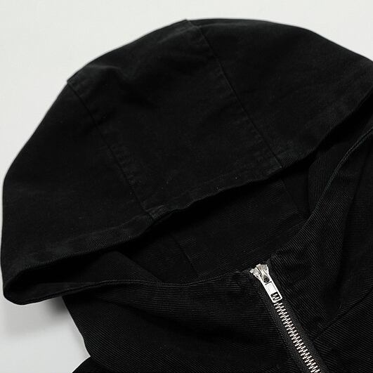 装飾や柄を一切排除した、無地の漆黒ジャケット。シンプルでありながら存在感があり、ストリートからモードまで幅広く対応する汎用性の高い一着です。素材の質感とシルエットで魅せる、引き算の美学が際立つ仕上がり。ややゆとりのあるボックスシルエットは、インナーに厚手のトップスを合わせてももたつかず、ライトアウターとしてロングシーズン使えます。