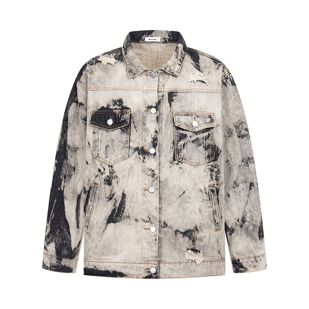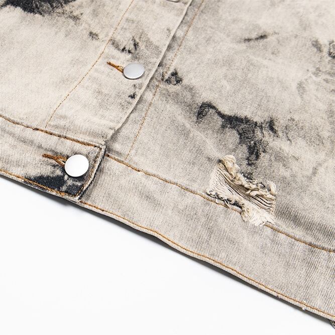 【商品名】ヴィンテージウォッシュデニムジャケット ダメージ加工ジャケット モードストリートジャケット